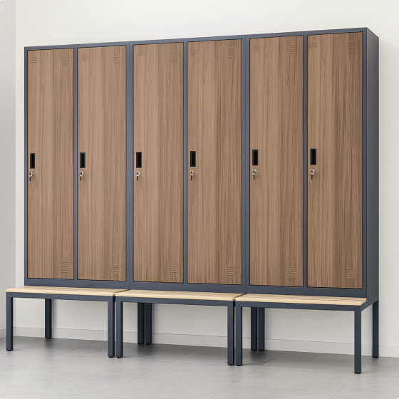 Nasze metalowe szafki ubraniowe dostępne są w różnych wariantach – wszystkie wyposażone w otwory wentylacyjne, które zapewniają odpowiednią cyrkulację powietrza i zapobiegają powstawaniu nieprzyjemnych zapachów. W ofercie znajdują się także szafki z ławeczkami, które pozwalają wygodnie się przebrać nawet w niewielkiej przestrzeni.